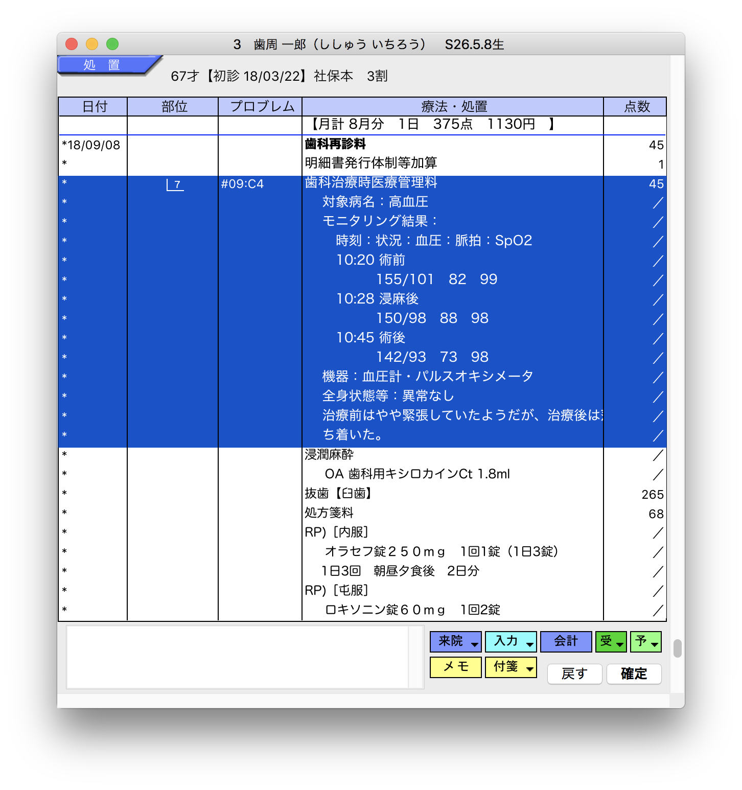 カルテメーカーでは、歯科治療時医療管理料(医管)、在宅患者歯科治療時医療管理料(在歯管)をカルテに入力し、ダブルクリックして編集画面にすることで